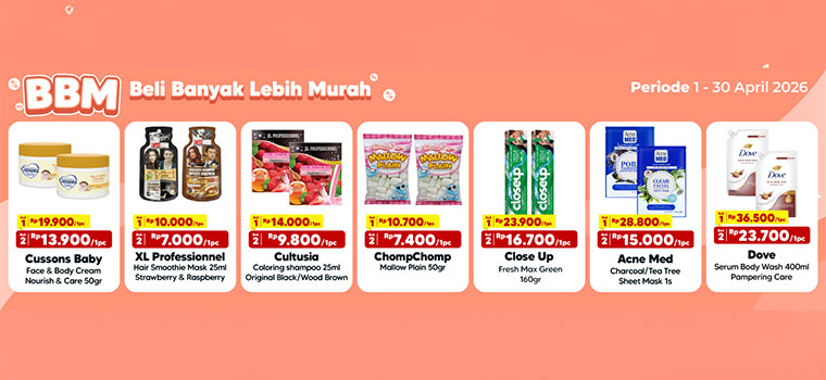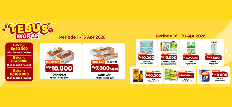 Belanja Rp50.000 bisa tebus 1 produk, Rp75.000 tebus 2 produk, dan Rp100.000 bisa tebus 3 produk.